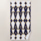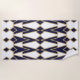 Esta toalha de praia tem um design de deco de arte de triângulos e diamantes que se parecem com arcos em azul e ouro.