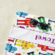 Toalha de praia de legal rapaz com um robô colorido e impressão alienígena, com uma faixa na parte inferior para você adicionar seu próprio nome ou mensagem