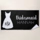 O tema da Praia Personalizada dama e favores. Silhueta de um bonito vestido branco contra preto. A tipografia branca de script lê Bridesmaid, e você pode facilmente personalizar com seus nomes de damas de honra e iniciais monogramadas para seu partido noivo. Se você quiser cores personalizadas, entre em contato com lésrubadesines (at) gmail (dot) com seu pedido.