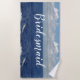Tema da praia de Bridesmaid. A Bridesmaid está escrita em branco. O fundo tem bonito oceano azul com ondas de espuma branca e céu azul claro com grandes nuvens brancas fluffy. Mantenha-se divertido toalhas de praia para a festa de casamento. Design de fotografia original © TamiraZDesign.