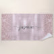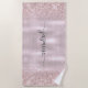 Toalha de praia de verão personalizada com brilho rosa dourado metálico e monograma de nome personalizado em letra cursiva. Este design apresenta seu primeiro nome em uma linda tipografia de letra manuscrita com cauda swash (ou caligrafia) em folha metálica falsa rosa dourada com brilho glamouroso e borda glitter. São fáceis de personalizar. Ótimo presente feminino e elegante para aquecimento de casa, também para aniversário, dia das mães, casamento, festa de 16 anos, despedida de solteira, chá de noiva, festa de formatura e é para a garota que ama coisas únicas e brilhantes.