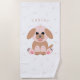 Esta design divertida, moderna, moderna, desenhada à mão apresenta um lindo, adorável, adorável cão de cachorrinho em cores pastéis com nome de bebê personalizado. Esta toalha pode ser um excelente presente para os seus filhos ou entes queridos.