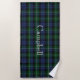 Toalha de praia de na moda, feita no clássico padrão de xadrez azul e verde do clã escocês Campbell tartan. Personalize o grande texto branco, no meio, para atender às suas necessidades.