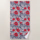 Toalha De Praia Cápsulas Botânicas Azuis e Vermelhas Florais