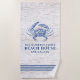 Esta toalha rustica de praia apresenta um caranguejo azul vintage com seu nome familiar sobre um fundo branco sujo de madeira lavada. Personalize com o seu nome familiar e faça desta sua única toalha de praia. Projetado para você pela Blackberry Boulevard