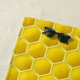 Cartoon voador de abelha sorridente sobre fundo de colmeia de abelha sem costura.