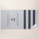 A toalha de praia náutica apresenta uma âncora de barco de estilo costeiro e uma design de listras. Personalize o texto personalizado com um sobrenome familiar e uma casa de praia (ou outro título) com o ano estabelecido e o local. Sistema de cor azul-marinho e sal marinho.