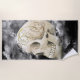 Dourado crânio coroado rodeado por design de nuvens de cinza.