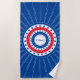 Celebrar eventos de férias americanos com estrelas festivas e listras em círculos de vermelho patriótico, branco e azul. Adicione seu próprio texto ao centro para toalhas de praia personalizadas perfeitas para festas de praia em Quarto de julho, piqueniques do Dia Memorial, comemorações de veteranos e muito mais. ♡ Idyllfire