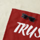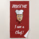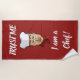 Cabeça de chef com chapéu, corcunda vermelha e texto personalizado.
