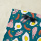 Toalha de praia colorida, impressa com ilustrações desenhadas à mão de ovos fritos, bacon e salsichas em fundo azul escuro. O presente perfeito para cozinheiros do café da manhã e cozinheiros!