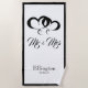 CHIC BEACH TOWEL_CLASSIC, MODERNO, MR & SRA. TEXTO PRETO EM BRANCO. CORAÇÕES NEGRAS. NOME E DATA EM PRETO.