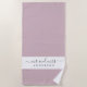 Toalha de praia roxa pastel púrpura com o texto Sr. e Sra. em um roteiro elegante fora de preto. Você pode personalizar esta elegante toalha de praia com seu nome casado. Presente perfeito para o novo casal. Desenvolvido exclusivamente para você pelo Happy Dolphin Studio.