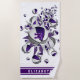 Esta divertida toalha de praia, tema de basquete, apresenta uma "explosão" de tamanho variado, roxo, cinzas e cestos brancos e formas de cinza roxas em fundo branco - um padrão de pequenas bolinhas brancas, a estrela roxa - personalizam-se com o monograma do atleta no maior basquete e nome em faixas de varSIDADE roxa verticalmente orientadas - por katz_d_zynes