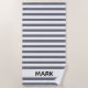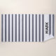 Uma toalha de praia listrada com cinzas e padrão de listras brancas. Personalize com seu nome.