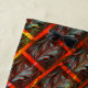 Esmagados com imagens quadradas e arranhões com manchas vermelhas e amareladas. Com traços escuros parecidos com 'destruídos' por efeitos, e o que parece ser os olhos em quadrados.