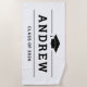 A toalha de praia de graduação personalizada, simplesmente na moda, apresenta um design de tipografia minimalista com boné de formando e sotaques. Personalize o texto ousado do nome negro e moderno para o seu formando e inclua o ano de aula. A cor branca do fundo pode ser alterada para corresponder às cores da escola ou da festa de formatura. Faz um presente de manutenção único para o formando.