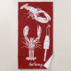 Toalha De Praia Colagem de Lagostas Náuticas Vermelhas e Brancas