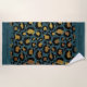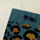 Estas toalhas de praia com estampa de animal podem ser personalizadas com seu nome e qualquer texto personalizado que você gostaria de incluir. Com um fundo azul turquesa com estampa de leopardo dourada e preta.