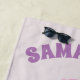 Mantenha seu legal na praia ou na piscina com esta toalha de praia personalizada bonito super que caracteriza um cone alto extra colorido arco-íris do sorvete com urso bonito as colheres dadas forma do sorvete. Personalize facilmente o texto roxo com esse special alguém nome usando o campo do modelo. Esta toalha de praia do divertimento faz um grande presente para fãs de brinquedos moles da comida. Encontre produtos de coordenação no bonito bastante para comer a coleção do design do asterisco.