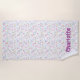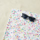 Confetti colorido - pontos redondos multicores com fundo branco e roxo e letras roxas