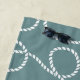 Celebre a vida no lago com uma bela toalha de praia personalizada costeira, com uma letra de máquina de escrever vintage e um par de pás de canoa cruzadas. "Lake House" ou sua escolha de texto personalizado aparece junto com as coordenadas de latitude e longitude de sua casa. Corda náutica detalhando completa o olhar.