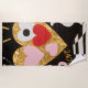 Uma pintura de abstrato, multimídia, com um grande coração de ouro texturizado em seu centro, com raios de luz emanando do alto à direita. Dentro, o coração ouro são três corações menores, cor-de-rosa pastel, vermelho vibrante e branco, o último contendo um ponto preto. Um vaso branco e estilizado se senta no chão da prancha de xadrez no canto inferior direito, enquanto uma linha rosada e mesclada se cobra no lado esquerdo da canvas. A palavra "AMOR" é pintada em letras douradas perto do fundo esquerdo. O fundo é um negro forte. O trabalho de arte tem um estilo gráfico ousado com um forte sentido de simbolismo, combinando elementos de amor, caos e ordem.