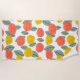 Esta toalha de praia tem um design escandinavo de flores e folhas espalhadas em coral, ouro e sábio verde.