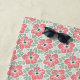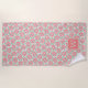 A toalha de praia com monogramas tropicais apresenta um padrão alado de flores de hibisco de corais e folhas verdes tropicais, com seu monograma inicial de solteiro centrado no fundo.