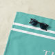 Conch Shell Beach House Nome Família Teal Beach Towel. Personalize este design personalizado com seu próprio nome familiar, ano estabelecido, cidade e estado. As toalhas de praia de verão perfeitas para sua casa de lago, casa de chalé, ou casa de praia.