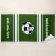 Refrigere a toalha de praia do futebol que faz um presente perfeito para um jogador de futebol ou uma equipe ou um treinador inteiro de futebol.  Mude a cor para combinar suas cores da equipe de futebol. Características de design um grande grupo da bola de futebol contra um design listrado.  Adicione sua linha dois do número dos jogadores (ou a supressão) de texto feito sob encomenda - adicione seu nome da equipe, nome do competiam, o nome do jogador, número, ano, etc. personalizam com todo o texto ou supressão.  Para mudar o clique da cor do fundo personalize/personalize e enrole para baixo para encontrar cores. Aperfeiçoe como uma extremidade do presente do treinador da estação, do presente da equipe, do aniversário ou do presente do Natal para amantes do futebol.  Qualidade e tamanho maravilhosos por um dia na praia ou na toalha de banho feita sob medida generosa.