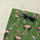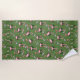 Este teste padrão bonito, original do flamingo tem uma torção retro do art deco com um motivo geométrico. Feito em máscaras brilhantes do rosa, o verde e a cinza em um campo de verde escuro, este teste padrão elegante, tropical igualmente incluem as frondas da samambaia. Personalize esta toalha de praia com seu nome. Quando você usa o modelo do texto, seu nome aparecerá em ambas as extremidades da toalha (upside-down na parte superior, para a visão fácil quando você sunbathing). Dirija à praia no estilo com esta toalha bonita do flamingo!