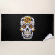 Toalha De Praia Crânio de Rosa Amarelo em Preto