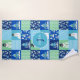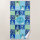 Crianças Octopus Winter Sports Patchwork Personalizada Quilt Pattern Beach Towel. Padrões de polvo e boneco de neve com esportes de inverno, esqui, trenó e snowboard. Feriado de inverno, Natal ou Hanukah ou aniversário de inverno.