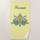 Blue Crystal & Dourado-Look Lotus Flower em uma toalha de praia personalizada de fundo amarela apresenta uma bela arte que se parece com uma flor de lótus com pétalas azuis cristalinas e um pistilo ouro brilhante no centro. Usamos um fundo amarelo ensolarado, mas você o muda para qualquer cor que quiser. Você pode mudar as imagens, adicionar texto e mudar o plano de fundo para se adequar a si mesmo ou para um presente personalizado. Consulte decoração personalizada e coordenada de casa e escritório e acessórios em nossa loja em zazzle.com/DIYDecor.