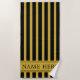 Toalha De Praia Custom Black M Gold Striped Beach Towel with Name