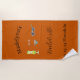 Inicie a festa com essas toalhas de praia fofas que são fáceis de personalizar para a despedida de solteira, ou fim de semana das meninas! O design moderno estilo festa apresenta imagens com tema de praia de um copo de coquetel, biquíni e óculos de sol com letras pretas em negrito em um fundo laranja queimado. Personalize com três linhas de texto personalizado; mostrado com o nome da noiva, tipo de evento, local e data. Todo o texto, imagem e plano de fundo podem ser editados de acordo com a sua preferência.