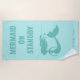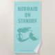 Uma toalha azul de praia de sereia com nome personalizado. Toalha de praia personalizada com design de silhueta de sereia e tipografia elegante com script de pincel. Adicione sua própria citação engraçada, nome real ou letras monográficas. Ideia de presente de Festa de aniversário única para meninas, filhas, mulheres, mães, avó, amigos, primos, irmãs, noivas etc. Acessórios divertidos ao ar livre para praia, viagem ou piscina. Ilustração divertida de conto de fadas submarinas com cabelo ondulado, cauda de peixe e cor de fundo personalizável. Presentes para ela. Sereia em espera.