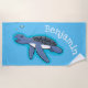 Esta toalha de praia feliz apresenta um desenho animado de tartaruga bebê. Perfeito por adicionar a diversão do oceano naquele dia na praia ou na piscina.