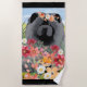 Este belo chow preto "awash" nos raios do sol também pode dobrar como uma vaca azul muito escura. As cores são tão ricas e vibrantes com a feliz vaca, com um conteúdo perfeito, sentada em sua fantasia floral! Adoro esta combinação de cores.