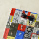 Aqui está uma design fora de batida, peculiar, zany — e até um pouco bizarra — para ir à praia ou ao polo. Ele apresenta um padrão em forma de tijolo de desenhos de close-up, em estilo de desenho animado, de faces e pessoas.