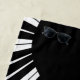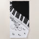 Teclado preto e branco clássico com um estilo curvo. As notas de música acrescentam uma aparência festiva.