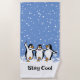 Penguins Design Beach Toel dançantes com cores de fundo e texto personalizáveis.