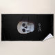 Toalha de praia com cabeça de crânio. Preto gótico e branco, design personalizado assustador. Texto, estilo de fonte, tamanho e cor podem ser alterados de acordo com suas necessidades. Legal, moderno. Imagem copyright Marg Seregelyi Fotografia.