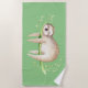 Uma Lama Adorável Em Uma Ramificação Que Está Saindo Em Uma Toalha De Praia Verde.