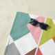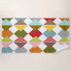 Esta toalha de praia tem diamantes e triângulos formando diamantes se sobrepondo.