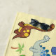 A design de relógio da parede mundial de Dino inclui dinossauros bonitos, vulcões e palmeiras.