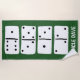 Adicione um nome ou uma mensagem personalizada para criar a toalha de praia personalizada perfeita. Esta toalha apresenta ilustrações simples, desenhadas à mão, de dominós brancos com pontos pretos e impressão sobre um fundo verde.