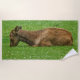 Uma fotografia de um vitelo de Elk cansado deitado num pedaço de grama misturado com trevos brancos. Imagem Copyright ©2019 Kimberly J Tilley.