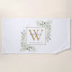 Toalha De Praia Dourado Monograma Elegante Verde Moderno